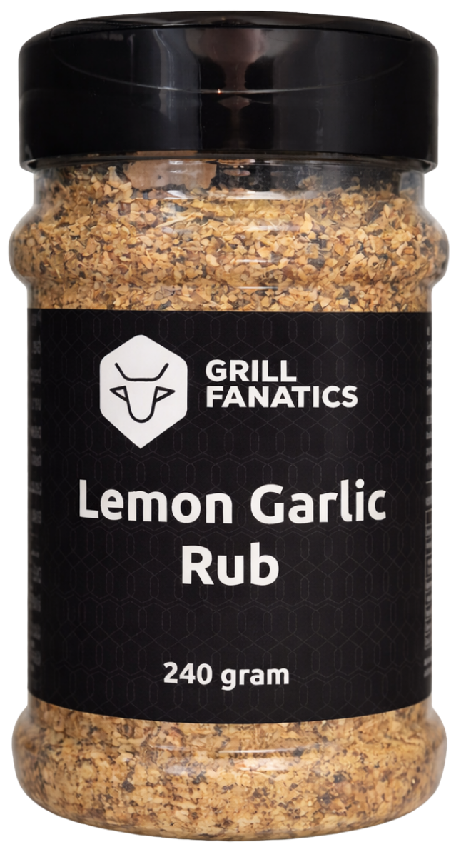Grill Fanatics BBQ Rub Lemon Garlic, combineer de frisse zuurgraad van citroen met de diepe, aromatische smaak van knoflook. Perfect voor zowel kip, vis als groenten.