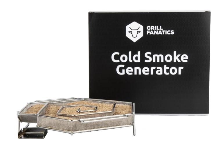 Pak 24 uur later de Cold Smoke Generator erbij en vul deze voor een deel met beuken rookmot. Een centimeter of 10 aan rookmot geeft al gauw 2 uur aan rook.