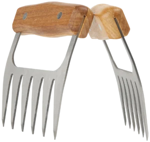 Krachtige RVS tanden voor moeiteloos shredderen Stevige houten handgrepen voor extra grip Ook te gebruiken voor het tillen en verplaatsen van vlees
